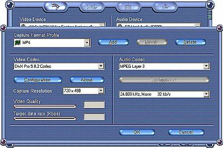 Раздел меню Capture Settings предоставляет как выбор готовых профилей для сохранения захваченного материала,