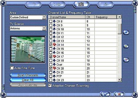 после чего появляются все каналы. Секрет функции Adaptive Channel Scanning проясняется сразу, обратите внимание на изменение надписи в окне Area с Russia (SECAM) на Custom Defined, то есть сканирование всего диапазона, причем если выбрать Custom Defined сразу (последняя надпись в столбце стран) — результат будет тот же. Что послужило причиной такого казуса, неверные представления инженеров Leadtek-а о нашей сети или же неверные представления наших телевизионщиков о вещательной сетке — сказать трудно.