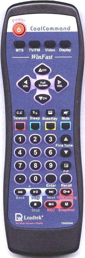 WinFast TV USB II комплектуется тем же пультом, что и Leadtek WinFast TV 2000 Expert / Leadtek WinFast TV DV2000. Питание от двух батареек типоразмера ААА, входящих в комплект поставки. Хорошей эргономичности способствуют разделение на цветовые зоны и удобное расположение кнопок настройки громкости и переключения каналов. К тому же, используемый интерфейс не сказался на многофункциональности пульта.Выводы