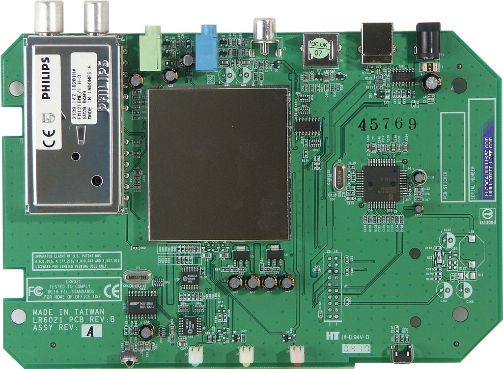 Металлический кожух скрывает 9-битный АЦП Philips SAA7113H и USB-контроллер EM2800 от EMPIA Technology Inc. Не совсем понятна причина такой экранировки, тюнеры конкурентов при более компактном расположении элементной базы прекрасно обходятся без нее.