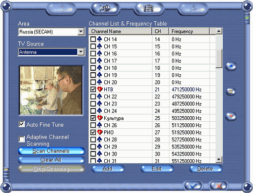 К сожалению, в программе отсутствует востребованная в непростых российских условиях возможность настройки индивидуального стандарта цветности для каждого канала.