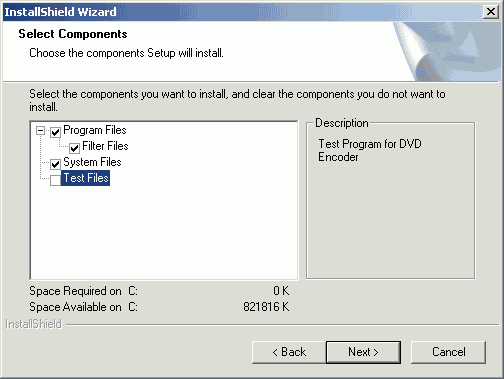 Выбрав в меню установки и удаления программ DVD Encoder с последующей опцией Modify, получаем возможность установки тестовой программы.