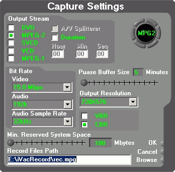 отвечает за параметры записи, по совместительству являющиеся и параметрами видимого изображения. Так что, заметив крупные пиксели, не спешите возвращать тюнер в магазин, а смените профиль VCD на что-нибудь с большим битрейтом.