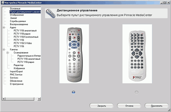 Пульт также знаком нам по Media Center 300i. К эргономике пульта есть только одно замечание — размер. С другой стороны, мне часто приходилось слышать нарекания на популярный в последнее время слим-дизайн. К тому же, пульт прекрасно справляется с управлением универсальной программой. Питание осуществляется от батареек типоразмера АА. Резидентная программа теперь поддерживает 2 пульта при наличии варианта с подключением к COM-порту.