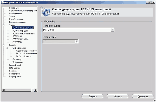 Сюрпризы продолжаются. Для каждого входа можно настроить аудиоисточник, причём передача звука возможна не только посредством кабеля, но и по PCI. Такое ощущение, что в Pinnacle Systems полностью поменялся штат программистов. Отметим, что при наличии соответствующего звукового устройства возможен вывод по SPDIF.