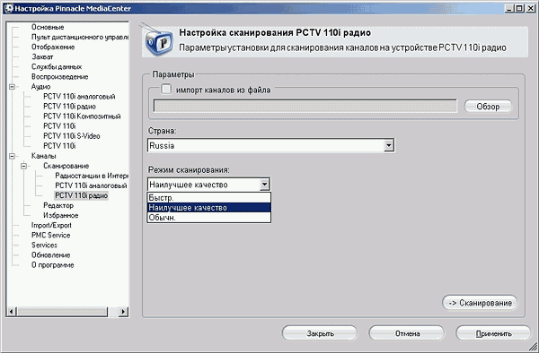 Имеются три режима поиска каналов. Как и все полупроводниковые тюнеры, в этой части TDA8275A проявляет себя с самой лучшей стороны — даже быстрое сканирование позволило обнаружить все мои каналы. О качестве мы поговорим ниже.