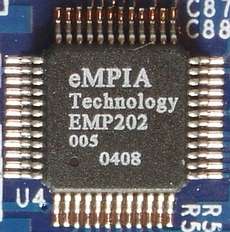 В передаче звука по USB задействован AC'97 кодек EM202 от той же EMPIA Technology.