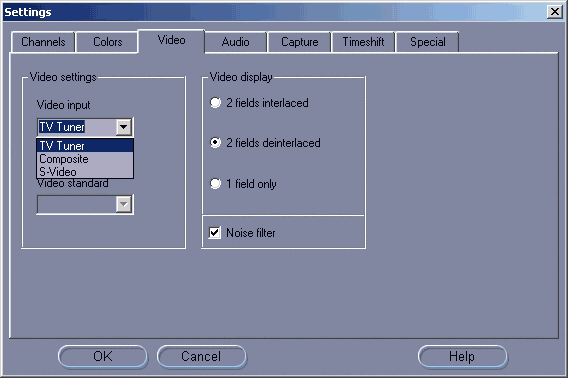 На вкладке Video доступны параметры деинтерлейсинга и активация фильтра шумоподавления.