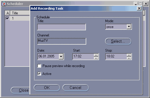 Планировщик достаточно примитивен, возможность отключения компьютера после окончания записи отсутствует.