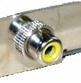 Рис.1. Разъём RCA на видеокарте.Используется для передачи сигнала в композитном виде. Разъёмы RCA присутствуют, фактически, у каждого современного телевизора. Они используются как для передачи видео (обычно цвет разъёмов — жёлтый), так и для передачи аудио (цвет разъёмов — белый и красный). При передаче сигнала в композитном виде через разъёмы RCA используется полоса пропускания около 3 МГц, следствием чего является относительно невысокая чёткость изображения (не более 300 линий). К тому же при передаче композитного сигнала по одному физическому каналу в ограниченной полосе частот невозможно полностью разделить яркостную (Y) и цветовую (C) компоненты, что создаёт эффект цветовых перекрёстных искажений (напоминает «сеточку»), особенно хорошо заметный на мелких контрастных деталях.