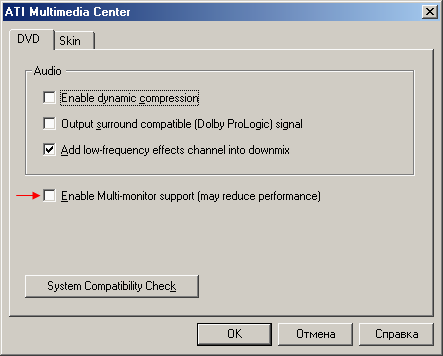 В своей предыдущей статье я упоминал про возможность включения в проигрывателе ATI DVD Player использования DirectX VA из реестра. Оказалось, что соответствующая опция имеется таки в настройках MMC (MultiMedia Center), и она называется… «Enable Multi-monitor support».