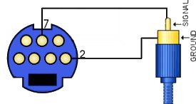 На современных картах RADEON, как правило, распаян только 7-контактный S-Video разъём. В связи с этим для подключения к телевизору по композитному сигналу необходимо использовать специальный переходник. Так как на 7-контактный разъём S-Video на картах RADEON выводится непосредственно композитный сигнал, то в поставляемых с картами переходниками S-Video>RCA обычно не используется смешивание яркостного (Y) и цветового (C) сигналов, а просто берётся уже готовый композитный сигнал с контактов разъёма S-Video. Схему такого переходника вы можете посмотреть здесь. Для карт серии All-in-Wonder требуются специальные переходники.