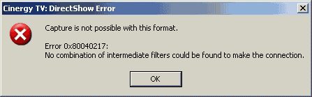 Как это ни странно, программа не смогла подружиться с MPEG1/2-кодеком от InterVideo, выдавая ошибку при попытке записи. С другими кодеками проблем не возникло.