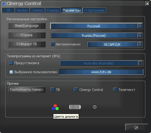 Внешний вид интерфейса программы Cinergy Control оставляет смешанное впечатление, благодаря таким нюансам, как непривычная цветовая гамма или скругленные углы видеоокна при отключении панели управления.