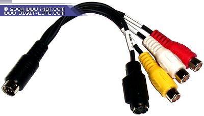 Коммутация внешних устройств осуществляется через переходник со стандартными разъемами RCA и S-Video.