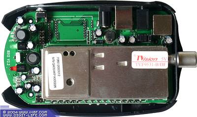 Снять плату не представилось возможным, она завальцована в корпус, поэтому разглядеть, что находится на обратной стороне, кроме непосредственно контроллера EM2800 от EMPIA, к сожалению, не удалось. Впрочем, не особо рискуя ошибиться, можно предположить, что аналогово-цифровым преобразованием занимается чипсет Philips SAA7113(7114)H.