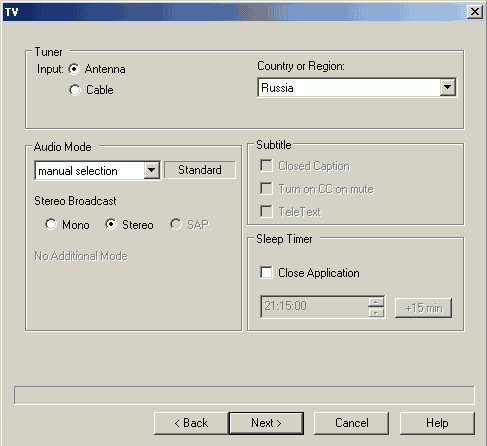 Выбрав SECAM_D и Line-In (воздержусь от комментариев в адрес такой организации вывода звука, но напомню, что с учетом питания тюнер подключается к компьютеру тремя (!) кабелями)