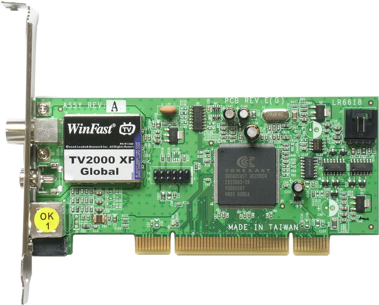 Leadtek WinFast TV2000XP Global — низкопрофильный TV- и FM-тюнер, младшая модель в линейке. Полупроводниковый селектор Xceive XC2028, 10-битный АЦП Conexant CX23883-39.