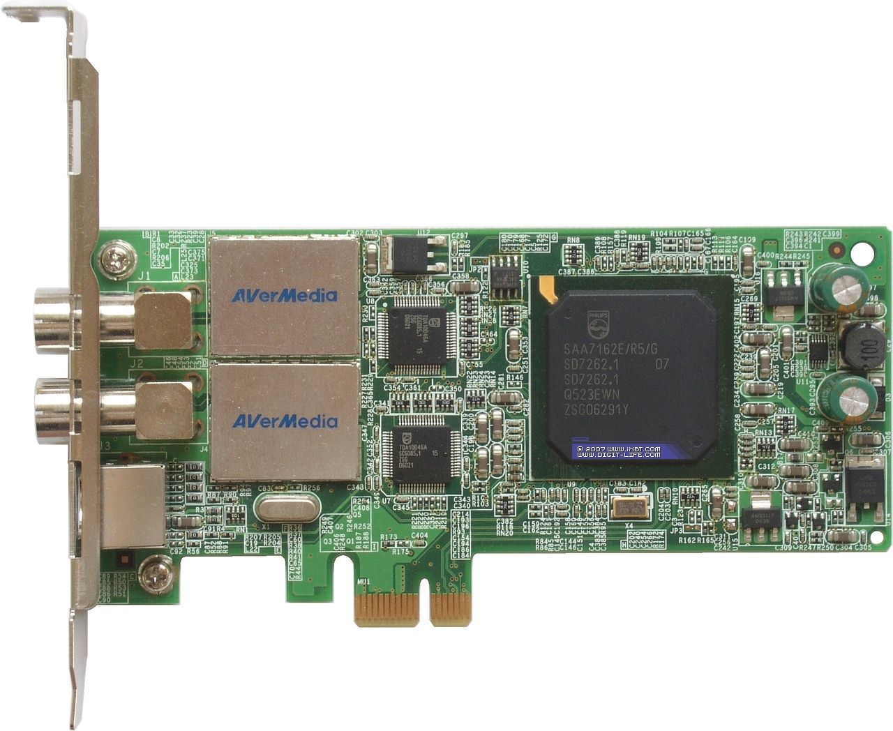 AVerTV Duo Hybrid PCI-E (A177) — гибридный TV- и FM-тюнер с интерфейсом PCI-Express, двумя полупроводниковыми ВЧ-блоками NXP TDA18271HD, двумя COFDM демодуляторами Philips TDA10046A и 10-битным мультистандартным двухканальным АЦП Philips SAA7162E/G.