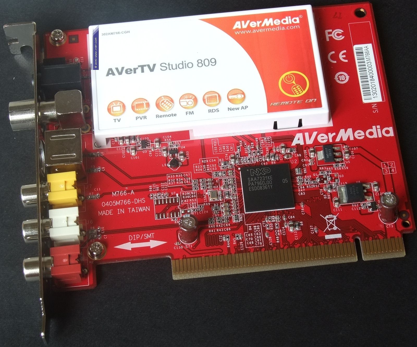 AVerTV Studio 809 (M766) — TV- и FM-тюнер с интерфейсом PCI. Селектор NXP TDA18271HDC2, 10-разрядный декодер NXP SAA7231NE.