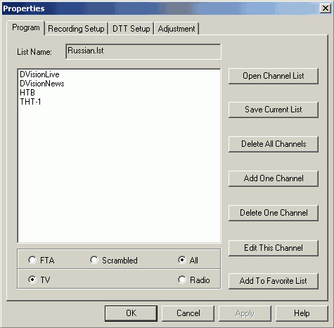 Единственное заметное отличие от программ для работы с аналоговыми тюнерами заключается в индикации уровня сигнала и уровня ошибок.