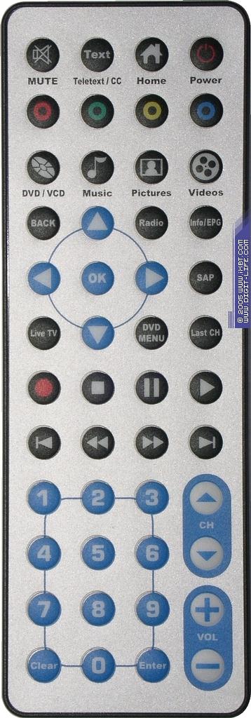 Тюнер комплектуется полноразмерным пультом, выполненным в лучших традициях слим-дизайна. Разделение кнопок по цветовым и функциональным зонам способствует неплохой эргономике. Питание от прилагаемой батарейки CR2025 3V.