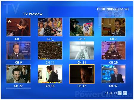 Существует возможность многоканального предварительного просмотра TV Preview.