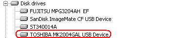 При подключении к компьютеру устройство сразу распознается, как внешний USB-накопитель, и можно увидеть, что в Gmini 400 используется относительно новый 1.8” HDD Toshiba четвертого поколения MK2004GAL. Это семейство винчестеров было представлено лишь в самом конце прошлого года и характеризуется очень низким энергопотреблением (до 1.5 Вт), что делает их идеальными для применения в портативных устройствах. В продаже они встречаются крайне редко, однако в результате поисков удалось обнаружить розничные предложения в Москве с ценой порядка $150.