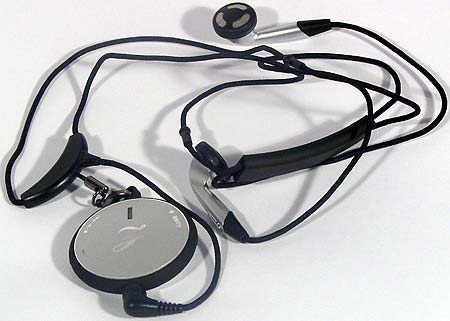 Еще присутствуют наушники, объединенные с «упряжью» для ношения плеера на шее. Наушники, как и следовало ожидать, мягко говоря, среднего качества, что в данном случае вдвойне обидно — выход-то на них нестандартный, да и при подключении обычных при помощи переходника придется думать о том, как же носить плеер (причем, в кармане он мгновенно потеряет все свои преимущества перед другими моделями).