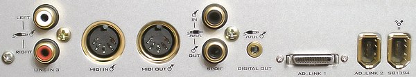 | Выходы блока | IEEE1394 Цифровой оптический Наушники Цифровой коаксиальный Цифровой четырехконтактный миниджек MIDI |