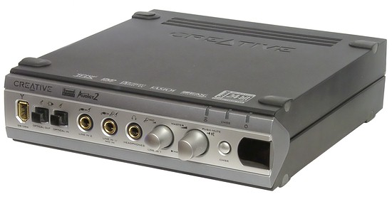 Звуковая карта с внешним блоком Creative Audigy2 Platinum eX самый дорогой и продвинутый член семейства Audigy2, появившийся через полгода после выхода Audigy2 Player и Audigy2 Platinum. Производитель позиционирует Platinum eX как бескомпромиссное решение для музыкантов и геймеров, говоря о качестве внешнего блока не иначе, как о studio-quality.