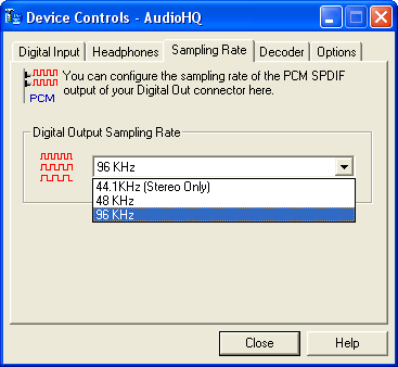- Для цифрового выхода помимо 48 кГц и 96 кГц появился новый режим 44,1 кГц. (Надо сказать, что он был ещё в Audigy1, но таинственно исчез при выходе Audigy2. Так как 44 кГц традиционно получается с принудительной двойной передискретизацией 44-48-44, актуальность данного режима находится под большим вопросом.)