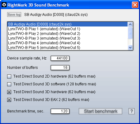 | DirectSound 3D + EAX2 16 buffers | 12/1,2 | 11,0/0,5 | 2,1/0,3 | 1,9/0,3 |