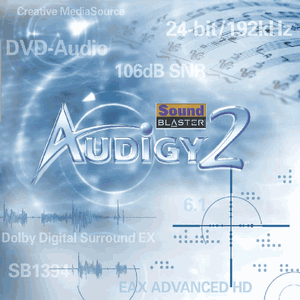 Итак, чем же замечательна карта Audigy2? В первую очередь, это пока единственная звуковая карта для PC, обеспечивающая реальную возможность воспроизведения музыкальных дисков следующего поколения — DVD-Audio, - которые могут содержать данные в форматах стерео вплоть до 24 бит 192 кГц или в 6-канальном формате 24 бит 96 кГц. Таким образом, карта Audigy2 обеспечивает поддержку максимального формата данных, встречающегося в DVD-Audio дисках.
