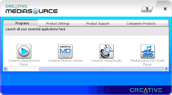 При нажатии на кнопку «Go!» появляется специальная панель, где иконки приложений сгруппированы по категориям. Все утилиты теперь объединены концепцией Creative MediaSource.
