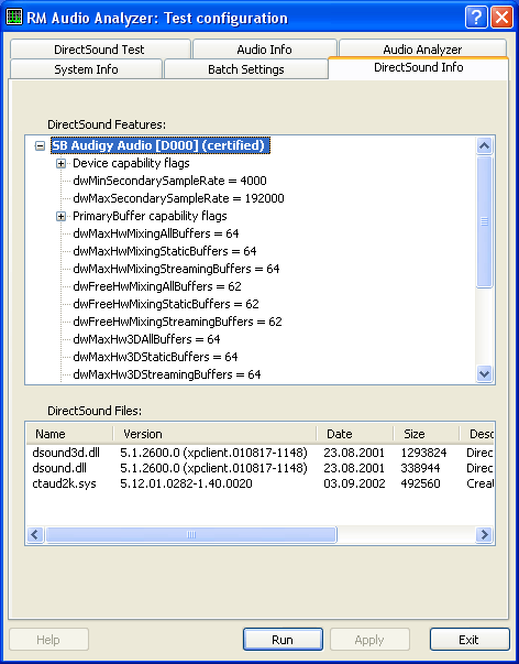 Диапазон воспроизводимых частот — также довольно бестолковый показатель, если не учитывать, что производитель может недоглядеть и допустить ляп даже здесь, на ровном месте. Так и произошло с Audigy, которая, несмотря на заявленную поддержку 24 бит 96 кГц, не умела полноценно воспроизводить звук в этом формате, явно пересчитывая всё в 16 бит 48 кГц, да ещё и имела сильный завал в ВЧ-области слышимого диапазона частот (причём, только в 24/96-режиме).