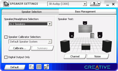 Аллилуйя! Цифровой многоконтактный выход Audigy2 теперь разнесён с аналоговым центрально-сабвуферным! Однако в режиме 6.1 новоиспечённый выделенный аналоговый выход становится четырёхконтактным…