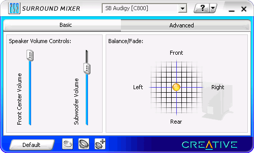 Что интересно, драйвера для Audigy2 подходят к просто Audigy (но, в отличие от unified-драйверов Creative/Compaq, не поддерживают Live!/Live!5.1). Более того, и старая, и новая карты уживаются в одном компьютере без конфликтов, а в Surround Mixer можно на лету переключать карты, различая устройства лишь по стоящему в скобках адресу ресурсов.