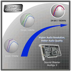В современных звуковых картах общее качество звучания неплохое и вполне достаточное для недорогих компьютерных колонок. Однако если прислушаться, различия, хоть и небольшие, всё же слышны на мультимедийных деревянных колонках и в Hi-Fi наушниках. А если учесть, что в моде сегодня акустика и источники звука повышенного качества (DVD-Audio в повышенном разрешении, DVD-Video с PCM и DTS, CD-DA со сжатием без потерь, высокобитрейтовые MP3), то расти картам ещё есть куда.