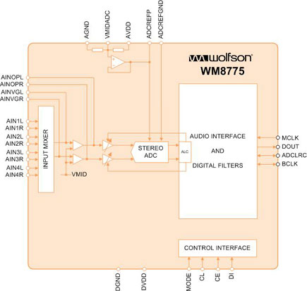 Four Stereo ADC Inputs with Analogue Gain Adjust from +24dB to –21dB in 0.5dB Steps