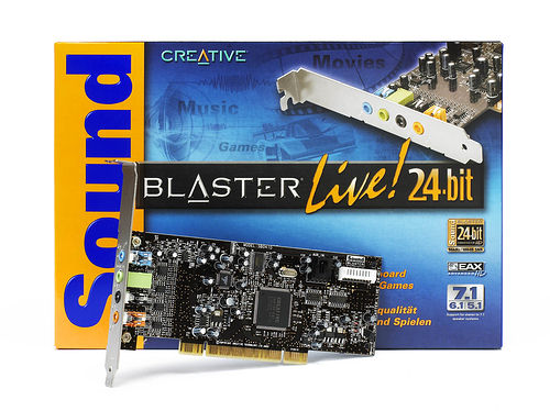 Официальная информация с сайта ru.europe.creative.com: Звуковая карта Sound Blaster® Live!™ 24-bit — отличное и экономичное решение для тех, кто хочет получить объемный звук 7.1 на ПК. Обладая превосходными техническими характеристиками (качество записи 24бит/96кГц, соотношение сигнал/шум при воспроизведении 100дБ, наличие цифрового выхода), Sound Blaster® Live!™ 24-bit идеально подходит для создания объемного звука при прослушивании музыки и просмотре фильмов. Технология EAX® ADVANCED HD™ 3.0 обеспечивает высокую степень реализма в компьютерных играх, с поддержкой разнообразных акустических эффектов и объемным детализированным 7.1-канальным звуком. Звуковая карта поставляется в комплекте с ПО Creative Media Source™, с помощью которого вы можете оцифровывать и записывать диски и управлять вашей домашней фонотекой.