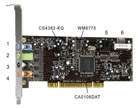 И, наконец, Live! 24-bit, на том же самом чипе CA0106DAT, как и в Audigy LS, но с более качественными ЦАПами от топовых Audigy2/Audigy2ZS. Также есть поддержка 7.1 и EAX3.0, и всё это при весьма привлекательной стоимости карты.