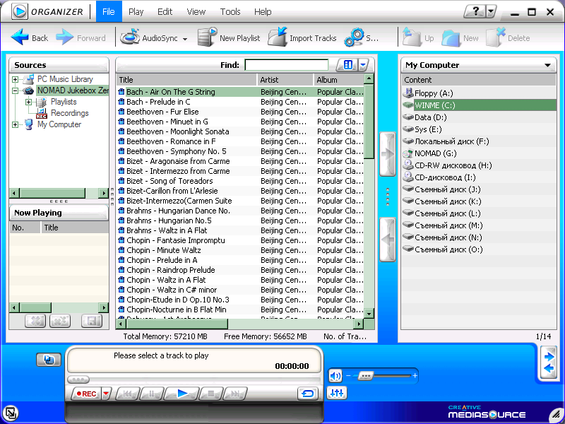 По старинке я рассчитывал на то, что раз уж у меня установлен Creative PlayCenter, то придется максимум обновить драйверы для плеера. Ранее этого действительно хватало РС поддерживает старые Nomad и Nomad Jukebox, однако с Zen Xtra этот фокус не проходит. Плеер нуждается в собственном ПО. Справедливости ради, по сравнению с РС родная программа-менеджер сильно изменилась в хорошую сторону. Похоже, что разработчики ориентировались на возможности iTunes, работающего совместно с iPod. В частности, именно оттуда пришла возможность автоматической синхронизации коллекций на компьютере и на плеере при подключении последнего. Ну а остальные возможности MediaSource Organizer мы сейчас разберем подробнее.