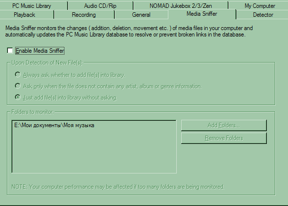 Media Sniffer способен сильно облегчить жизнь тем пользователям, кто собирается для работы с коллекцией использовать внешние, по отношению к MediaSource средства. Вам не придется заботиться о целостности коллекции при удалении файлов или о том, чтобы все добавления были своевременно учтены программа умеет делать это сама.
