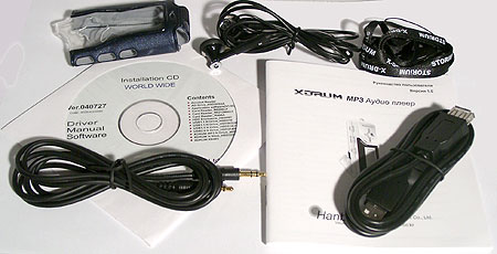 Кроме самого плейдрайва, в коробочке вы обнаружите несколько приятных мелочей, вроде чехольчика, шнурка для ношения устройства на шее и пары кабелей: USB-удлинитель и аудиокабель «папа-папа». Содержимое прилагаемого диска мы обсудили в предыдущем абзаце, а руководство пользователя, хотя и переведено на русский язык, но, к сожалению, достаточно неграмотно. Наушники даже отмечать отдельно не хочется: в очередной раз наблюдаем стандартное «нулевое» качество комплектных «ушей», видимо даже закупаемых производителями в одном месте.