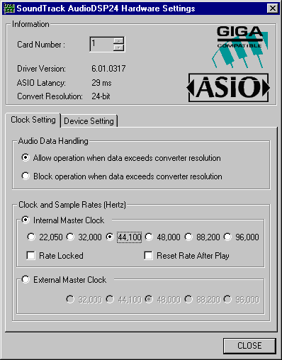 На данный момент ситуация с новыми операционными системами W2K/XP для многих профессиональных карт весьма печальная. WDM-драйвера часто представляют собой продукт с ущербной функциональностью, а также находятся в перманентном beta-тестировании. Не стала исключением и карта Hoontech DSP24 Value. Драйвера v7.1.0928 Beta5 (11/07/01) под W2K SP2 на момент тестирования были лишены мультиклиентности и совместимости с GSIF (семплер GigaStudio версии 2.5 не находил GSIF-совместимого устройства и не запускался, выдавая ERROR 60000).