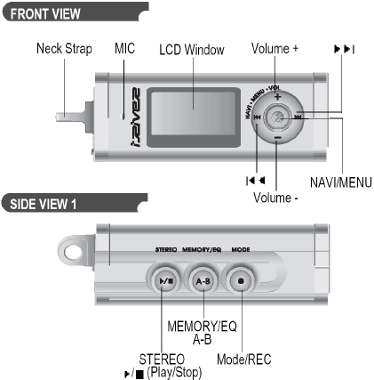 Больше про управление говорить не вижу смысла на мой взгляд, все вполне понятно по рисунку. Все неупомянутые возможности стандартны: переключение между режимами, стирание файлов или радиостанций, запись. Эквалайзер пресетный (пять предварительных установок), но есть и пользовательский режим. Управление порядком проигрывания отличается только тем, что повтор одной или всех песен, а также проигрывание песен в случайном порядке можно включить как для всего содержимого плеера, так и для отдельного каталога. Единственное, что на рисунке не изобразили, а я доселе не сказал: у плеера есть нормальный ползунок для блокировки кнопок.
