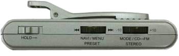 Кажется, что при нажатии кнопки Open раковина откроется, и мы увидим жемчужину :) Боковая поверхность плеера усеяна кнопками управления и разъемами. Последние представлены очень хитрым разъемом для подключения пульта ДУ/наушников, двойным разъемом для подключения блока питания и внешнего батарейного отсека, ну и, наконец, линейным выходом. Ну и классический набор кнопок: Hold (на нижней поверхности), Open, On/Play, Off/Stop, Forward, Back, Volume Up, Volume Down (на боковой поверхности).