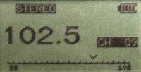 Споры о необходимости встроенного в плеер FM-тюнера идут давно. Однако для себя, я решил что встроенный приемник в плеере должен быть обязательно, поскольку энергии батареек он потребляет всего ничего, а послушать свежие новости всегда бывает полезно. Приемник работает в стандартном диапазоне 87,5–108 МГц. Пользователь может осуществлять поиск станций в этом диапазоне с шагом 0,1 МГц. Имеется память на 20 станций. В качестве антенны, как обычно, используются шнуры наушников и пульта ДУ. На фото вы видите LCD экран в режиме работы приемника.