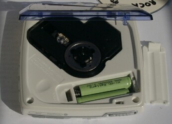После извлечения плеера из коробки, я долго его вертел и так и сяк, терзаемый вопросом: и куда тут вставлять батарейки? Как оказалось, батарейный отсек был спрятан под верхней крышкой, неподалеку от привода.